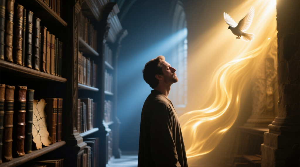 Дух Святой начинает делиться истинной информацией о живом Боге, о его характере, как действует. Основной элемент Духа Святого, где учит душу исполнять волю Божью. Дух воскресает и уже может принимать наставления от Бога, а потом передавать душе. То самое примирение происходит духа с душой и главенство Духа Святого.